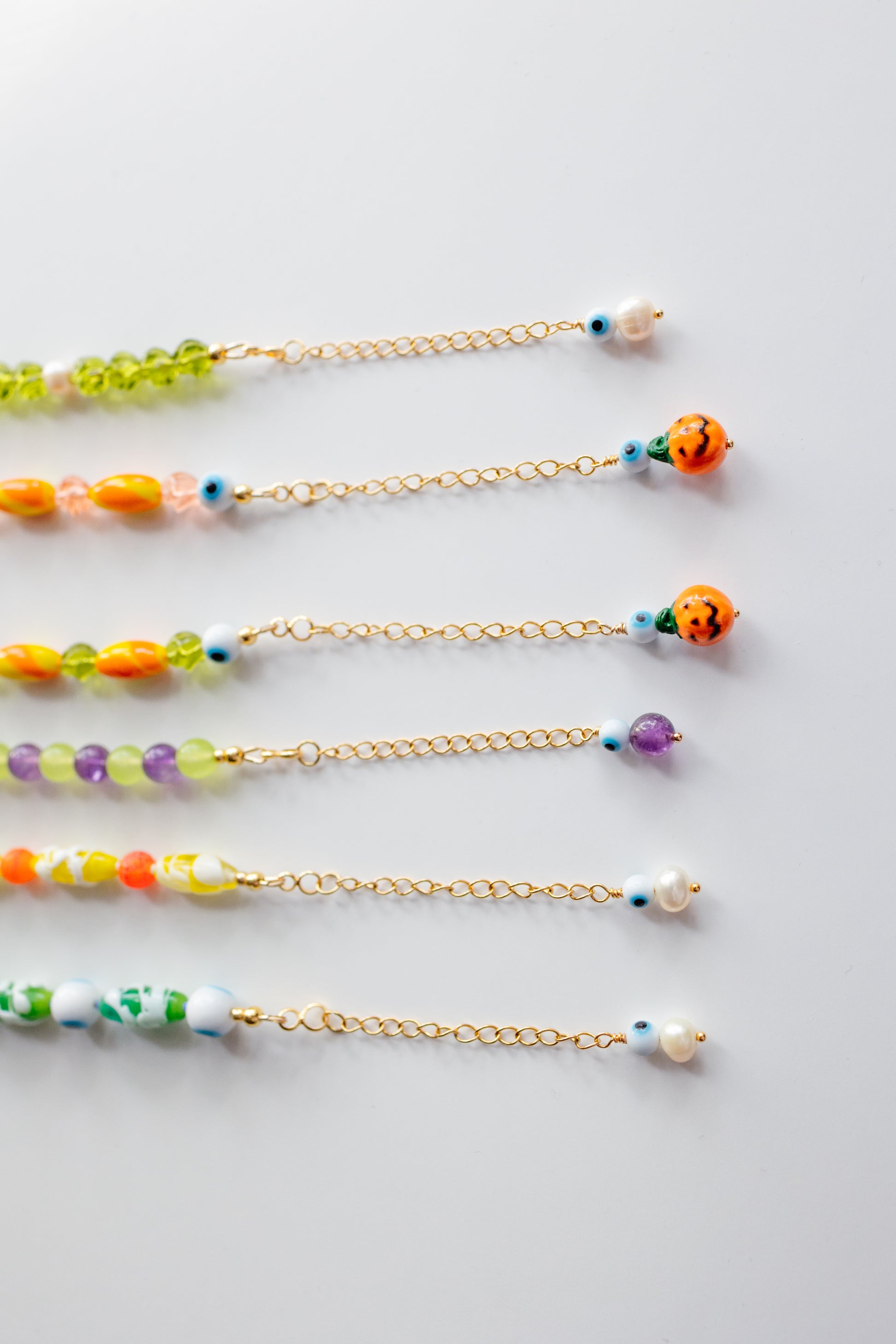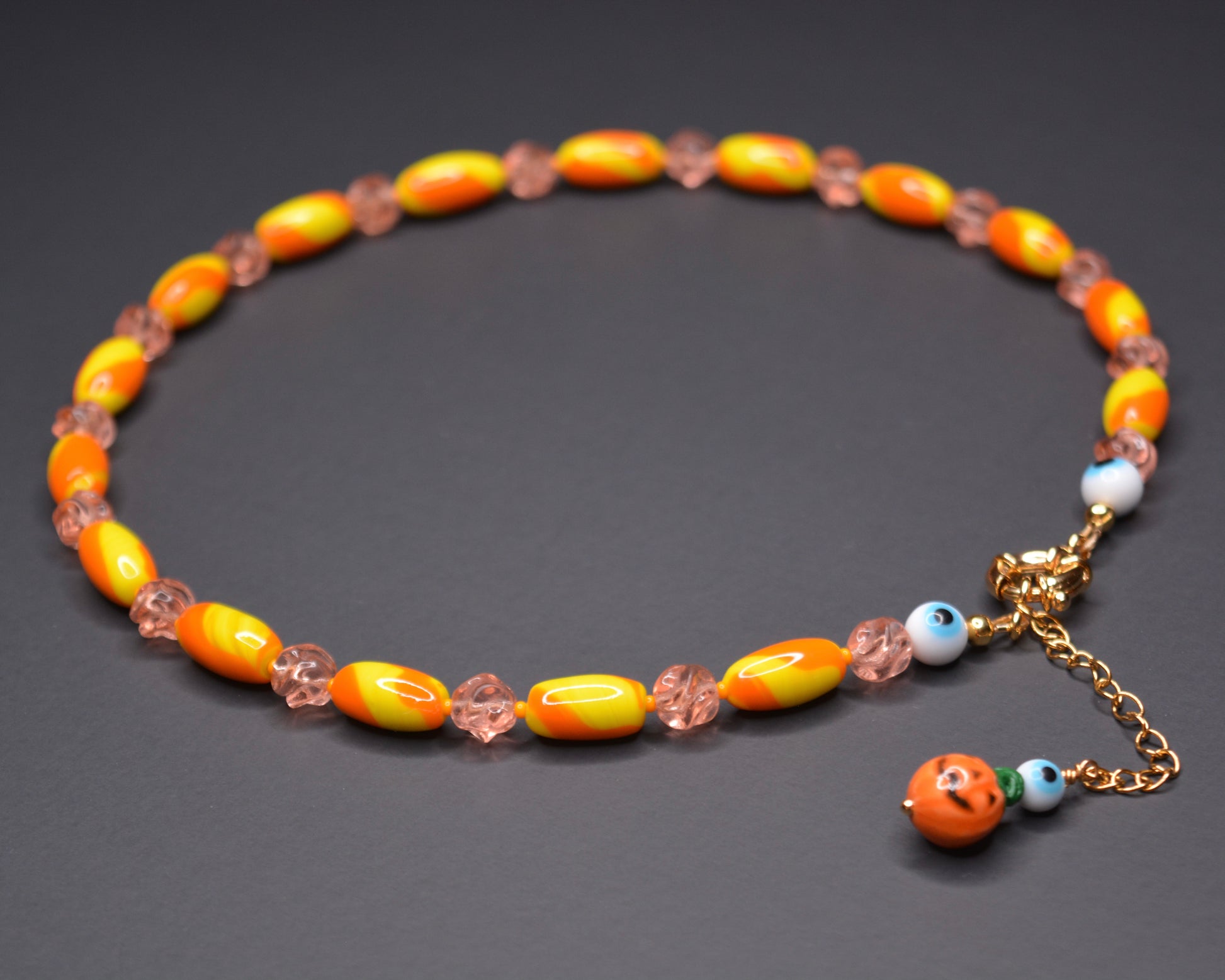 Vintage handmade Japanese glass beads, Czech glass, hand painted glass, hand painted ceramic charm.